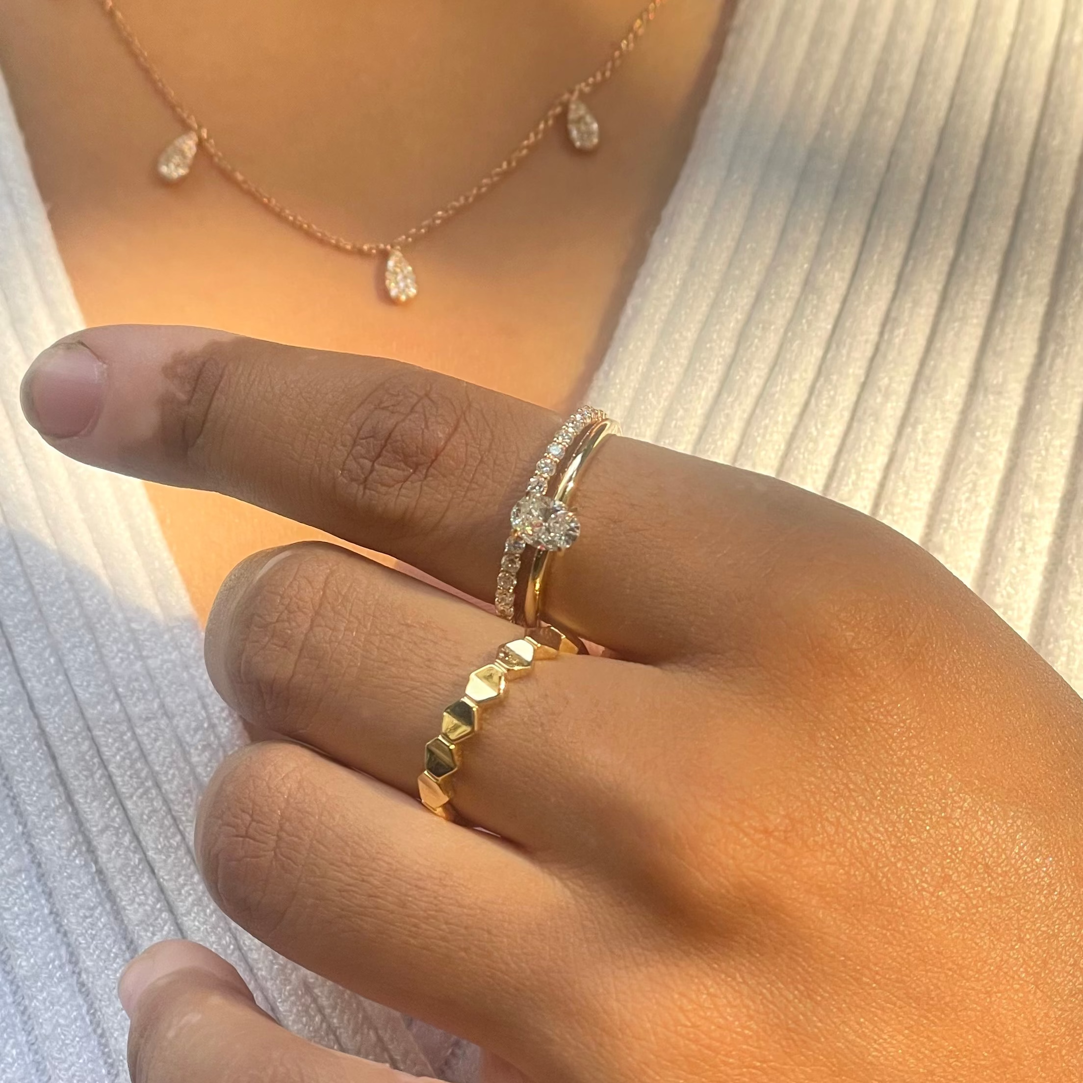 I really love the ring. It is sparkly and well-made. It’s the perfect dainty addition to any stack.