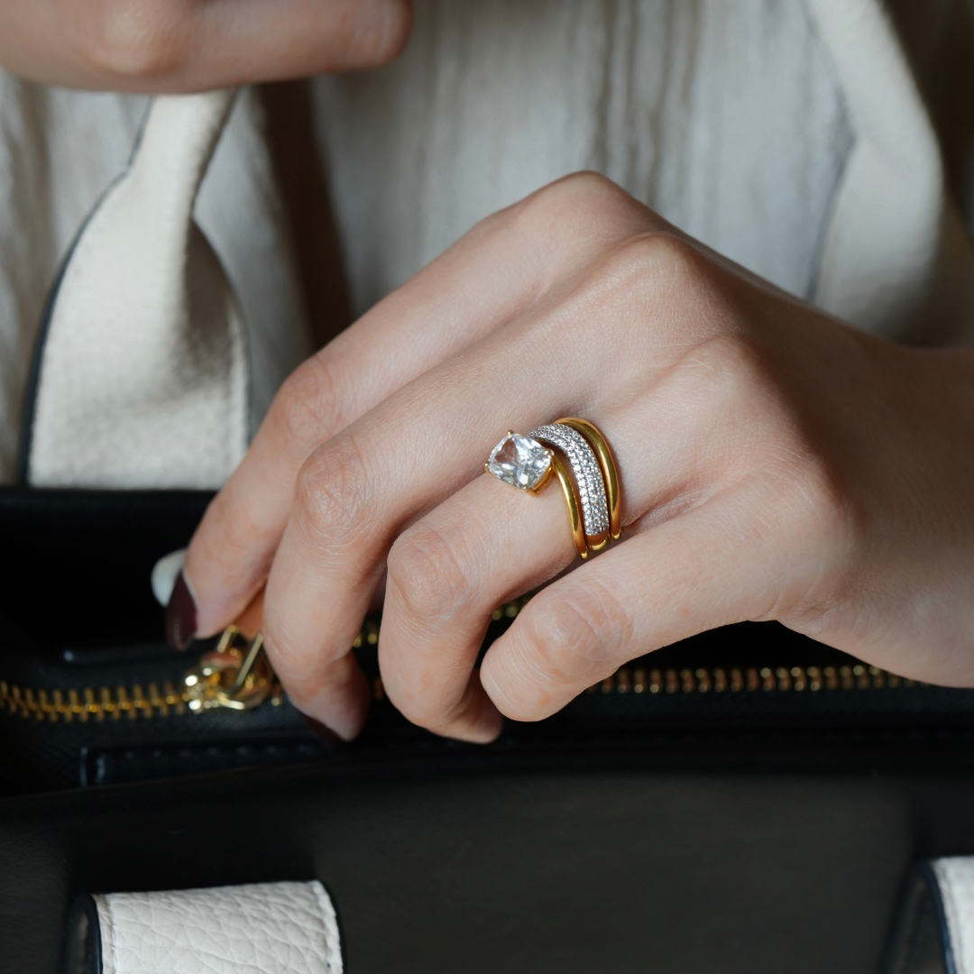 I really love the ring. It is sparkly and well-made. It’s the perfect dainty addition to any stack.
