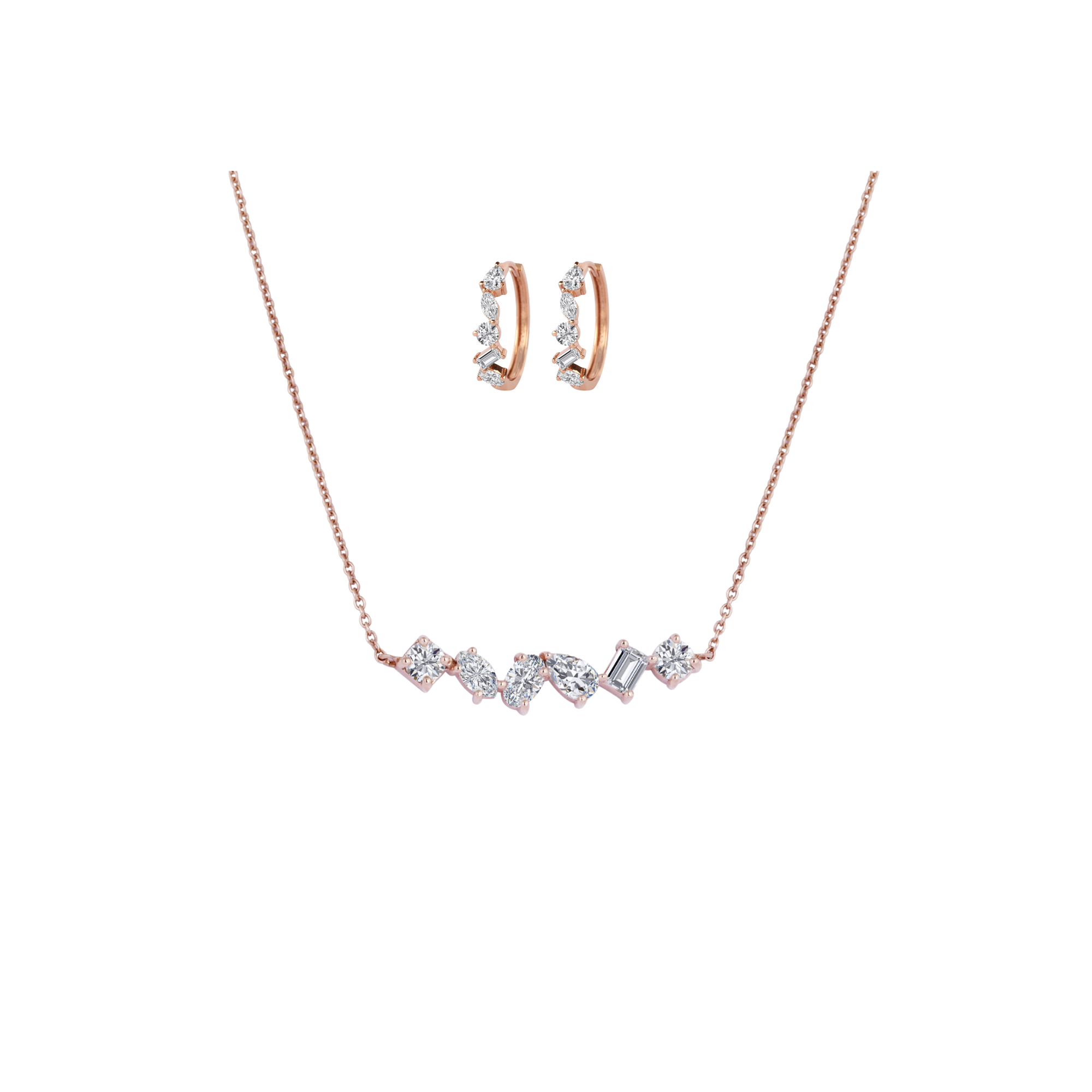 Multishape Pendant Necklace & Hoops Set