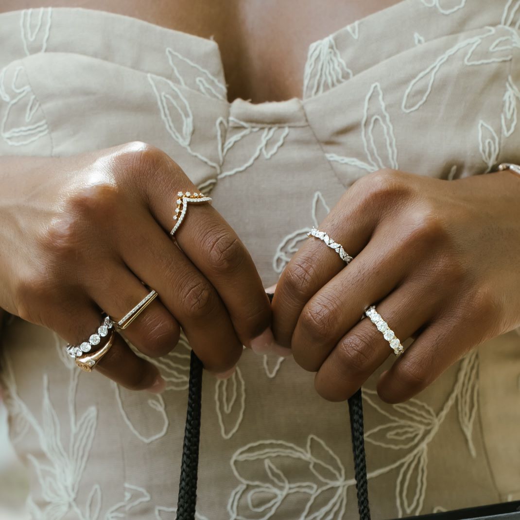 This ring makes for a great value-buy, to change around your looks when stacked with your solitaire ring.