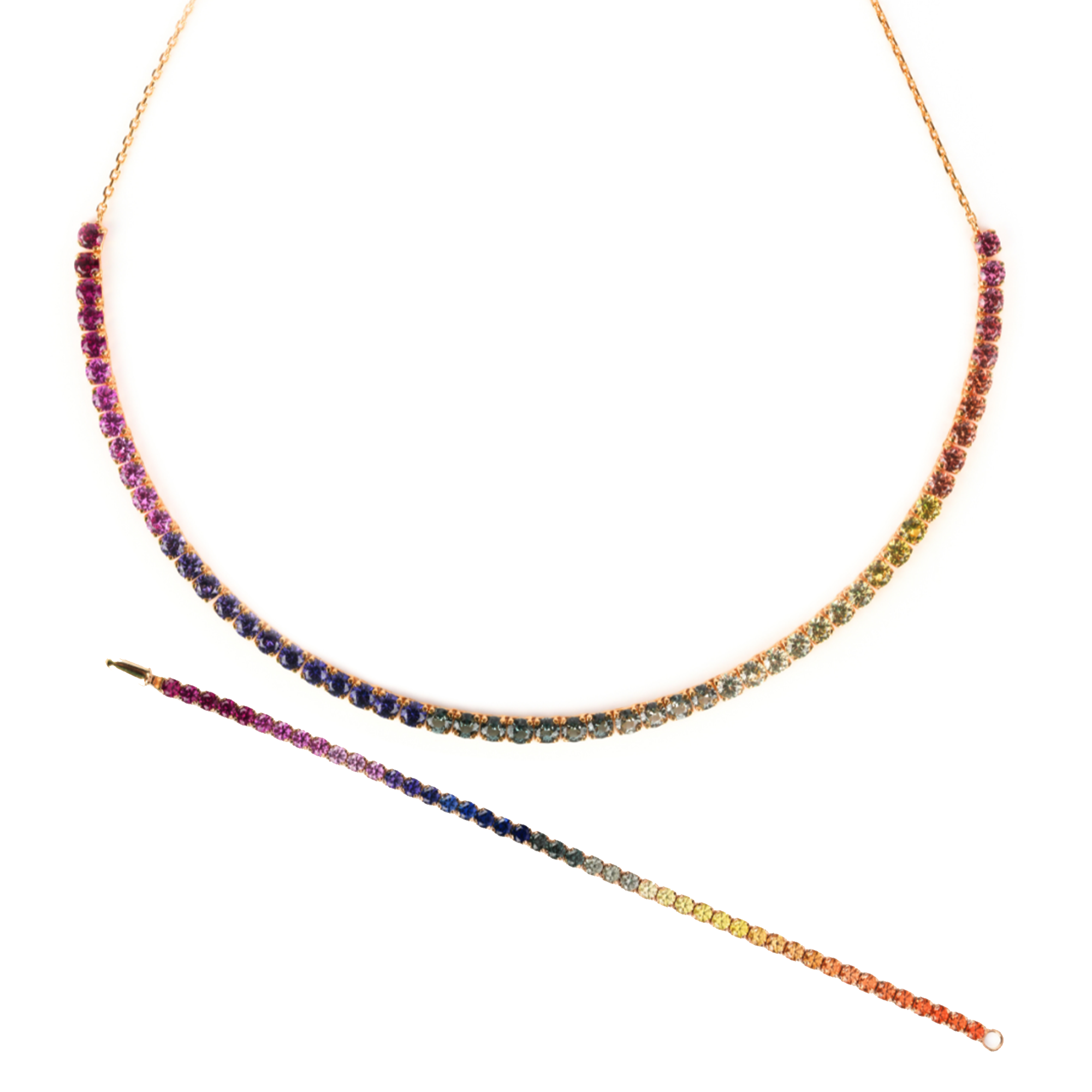 Why choose between a necklace and a bracelet when they were designed to be worn together? The LiteString™ Half Rainbow Tennis Necklace & Bracelet Set combines our two most innovative pieces into one stunning look.